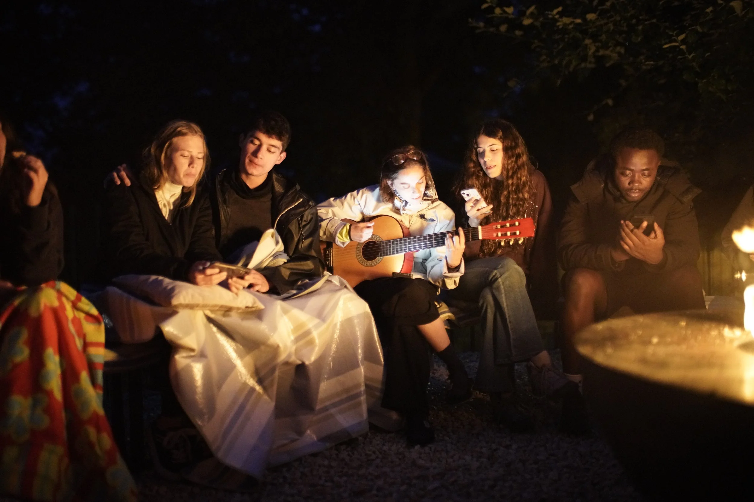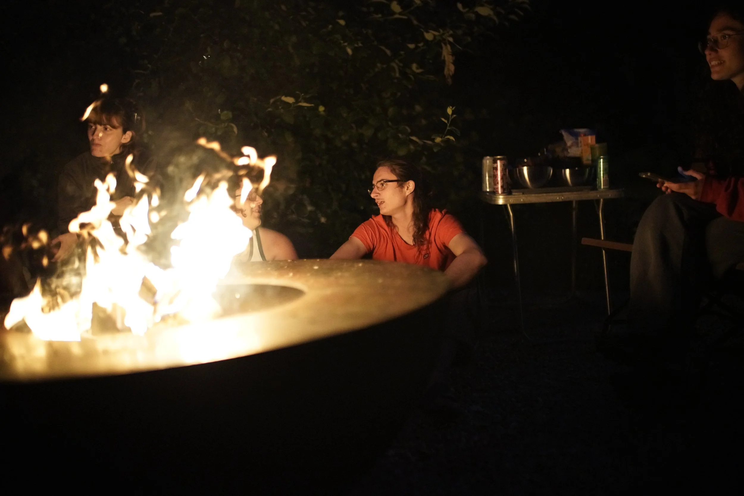 But beyond the sessions, what left the deepest impact were the connections and shared moments: exploring the cities of Erfurt and Weimar, walking through the beautiful community garden Egapark in Germany, swimming in rivers, movie night in the woods watching Forrest Gump, picnicking by the river, and sitting together by the bonfire with music and laughter.